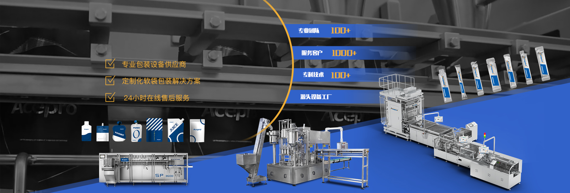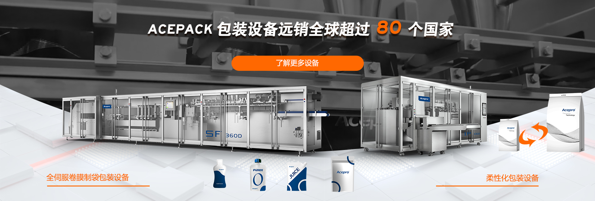 ACEPACK(上海歐朔智能包裝科技有限公司)是一家專(zhuān)門(mén)從事全自動(dòng)包裝機(jī),智能包裝生產(chǎn)線(xiàn),智能化包裝系統(tǒng)設(shè)計(jì)、研發(fā)、制造、銷(xiāo)售和服務(wù)的高新技術(shù)企業(yè)。公司前身上海歐朔包裝機(jī)械有限公司,成立于2005年,堅(jiān)持“工匠創(chuàng)新,智能轉(zhuǎn)型”的發(fā)展理念,于2017年更名為上海歐朔智能包裝科技有限公司。公司主營(yíng):水平式包裝機(jī)、柔性化水平式包裝機(jī)、全伺服水平式包裝機(jī)、全伺服多列包裝機(jī)、自立袋包裝機(jī)、異形袋包裝機(jī)、吸嘴袋包裝機(jī)、全伺服四邊封包裝機(jī)、給袋式包裝機(jī),液體灌裝機(jī)等全自動(dòng)包裝機(jī)。ACEPACK成立至今,從傳統(tǒng)包裝到智能制造,始終秉承創(chuàng)新、學(xué)習(xí)、誠(chéng)信、團(tuán)結(jié)共贏(yíng)的核心價(jià)值觀(guān),以及專(zhuān)注、責(zé)任的質(zhì)量理念。產(chǎn)品廣泛應(yīng)用于制藥、食品、日用化工、大健康產(chǎn)業(yè)等眾多領(lǐng)域,并遠(yuǎn)銷(xiāo)全球70多個(gè)國(guó)家和地區(qū)。ACEPACK無(wú)論從終端用戶(hù)需求還是產(chǎn)業(yè)端需求,我們都將憑借多領(lǐng)域創(chuàng)新技術(shù)的協(xié)同發(fā)展,致力于打造智能包裝系統(tǒng)國(guó)際化品牌,為全球客戶(hù)創(chuàng)造包裝價(jià)值。
