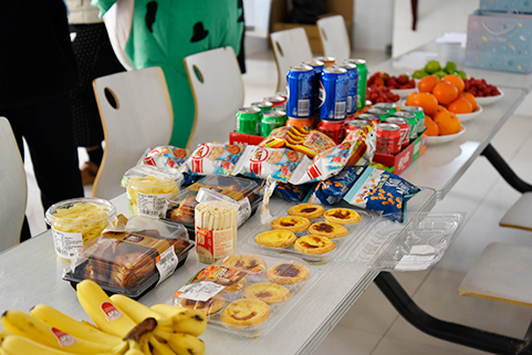 隨后,所有的壽星們被邀請至公司的休息區(qū),這里早已被布置得溫馨而別致,五彩斑斕的氣球、繽紛的彩帶以及一塊寫滿祝福語的蛋糕,構成了一個小小的慶祝天堂。在輕松愉快的背景音樂中,大家圍坐一圈,共享著各式各樣的零食與美味的蛋糕,空氣中彌漫著甜蜜與幸福的味道。