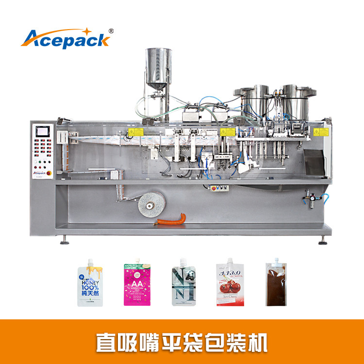 直吸嘴平袋包裝機系列為小袋、中袋包裝而設計,擁有雙工位下料,兩振動盤同時加嘴封口成形,大量應用于液體包裝類型。