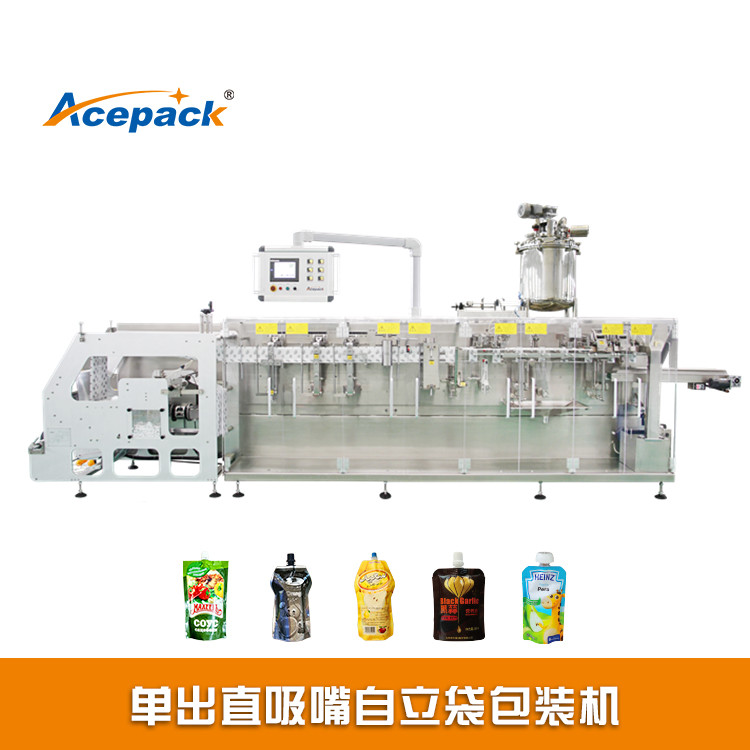 直吸嘴袋包裝機(jī)系列專門為直吸嘴自立袋需求而設(shè)計(jì),并擁有靈活的功能應(yīng)用,如加掛孔、異形、拉鏈、吸嘴等功能,大量應(yīng)用于食鹽、潤(rùn)滑油、飲料、果汁、酸奶、醬料、食用油、洗護(hù)系列等包裝類型.吸嘴袋包裝機(jī)常用來包裝果汁,飲料,洗滌劑,牛奶,豆?jié){,醬油等液體物料。